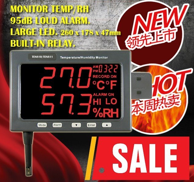TEN811-Large Wall Display Temperature/Humidity Monitor with 95dB Sound Alarm/Controller