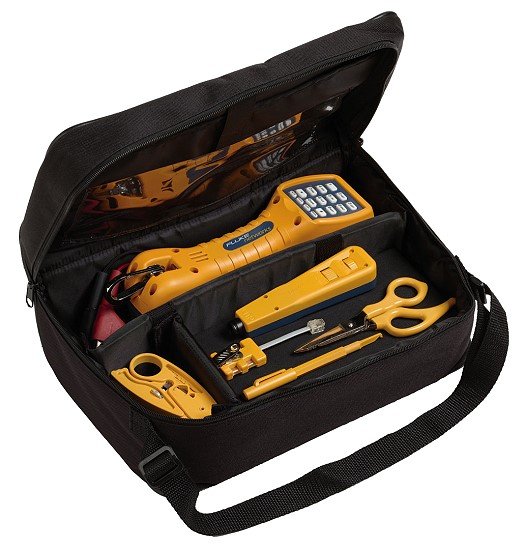 Fluke Networks' Electrical Contractor Telecom Kits are comprised of industry standard telecommunications tools and test equipment, in a durable cordura case. The kits are designed for technicians who install, test and troubleshoot phone and data lines. Electrical Contractor Telecom Kit I includes a TS®30 Test Set w/ Angled Bed-of-Nails Cord, D814 Impact Tool, EverSharp 66/110 Cut Blade, Electrician's D-Snips, Cable Stripper, Standard 4-Wire Modular Adapter and Probe Pic. Electrical Contractor Telecom Kit II includes the same items but offers the Pro3000 Analog Tone & Probe in place of the TS30 Test Set.