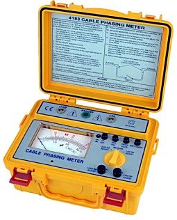 ● Safely operates at low voltage ● Measures system voltage. ● Measures capacitance of test point if system voltage is known. ● Checks phase rotation of cables. ● Phases out cables. ● Rugged - comes with portable case. ● Operates from potential test point of elbow connectors. ● Battery operated.
