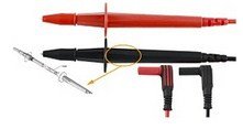 ● The spring-shrouded 4mm brass caged banana probe tip.
