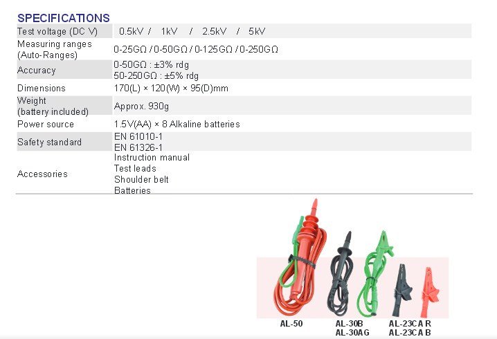Test voltage (DC V) 0.5kV /   1kV     /   2.5kV   /   5kV